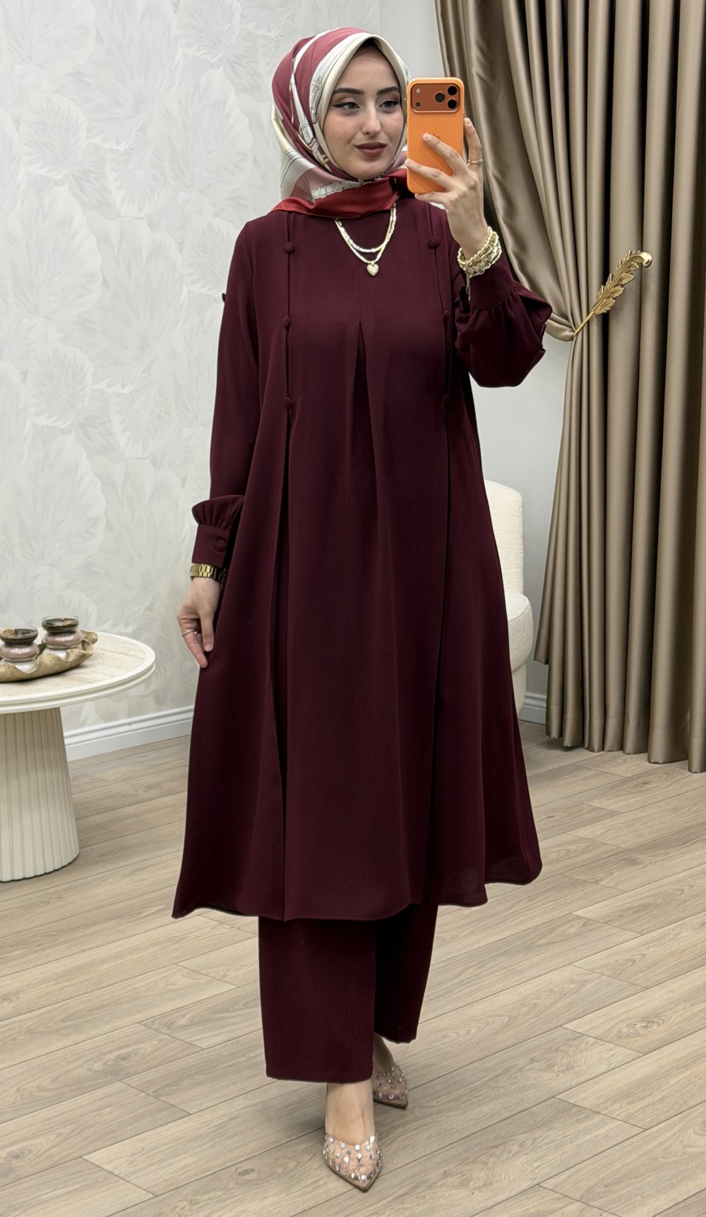 Rahatlık ve şıklığı bir araya getiren Ahsen Takım,sade ama zarif duruşuyla günlük kombinlerinizi güçlendiriyor. Yumuşak kumaşı ve esnek yapısı sayesinde gün boyu konfor sunarken, modern kesimiyle stil sahibi bir görünüm yaratır.