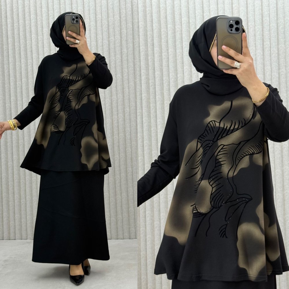 Renkler gül - yaprak siyah - dalga desen - Vizon çiçek desen