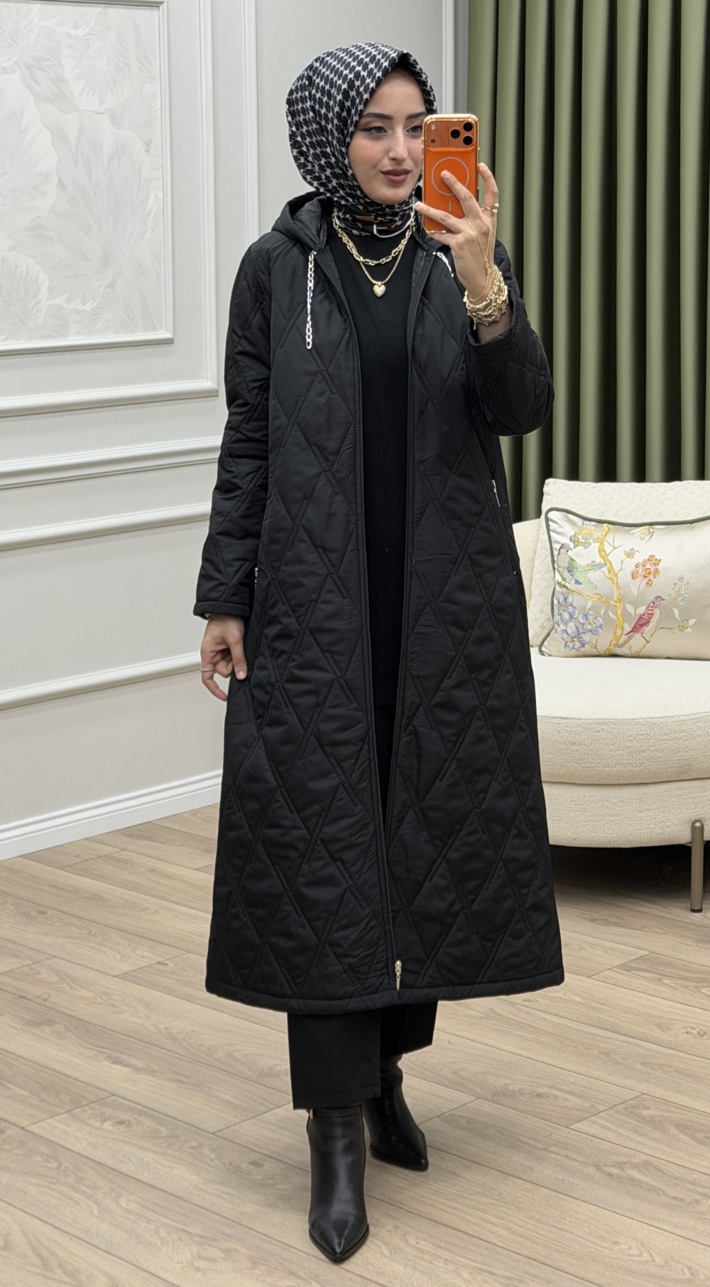 Gözde Kapitone Mont Siyah