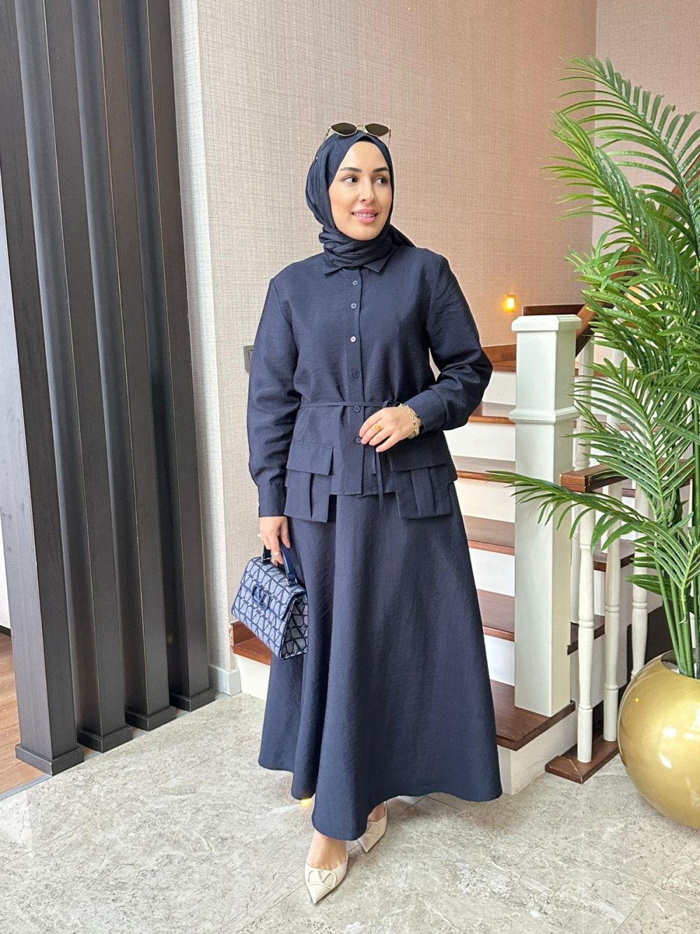 Cep Detaylı Cupra Etekli Takım Lacivert