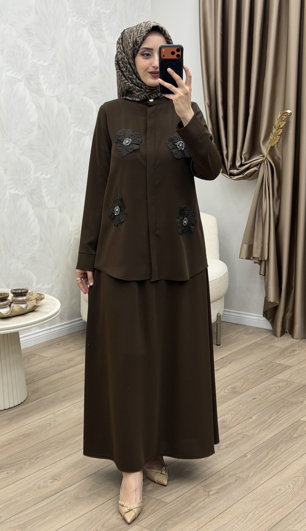 Çiçek Etek Takım,hem iş hem de günlük hayatınızda rahatlıkla tercih edebileceğiniz çok yönlü bir parçadır. Şıklığı konforla buluşturan bu tasarım, sezonun en gözde modellerinden biri olacak