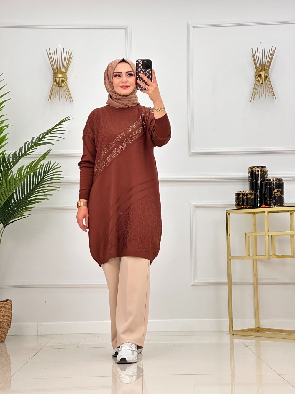 DİLAN TAŞLI TUNİK-KAHVERENGİ