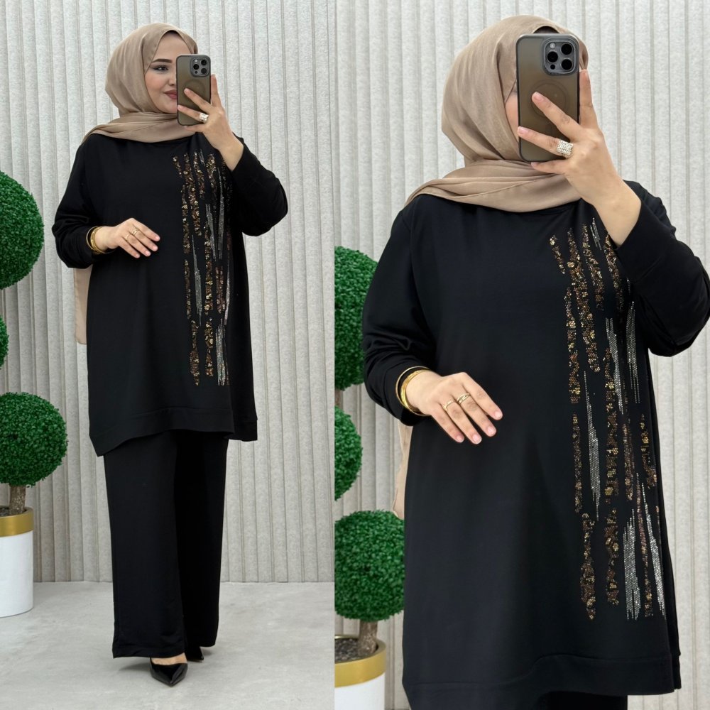 ? 3 beden Göğüs 74 cm Tunik Basen 80 cm Pazu 26 cm Pantolon Bel açık 72 cm