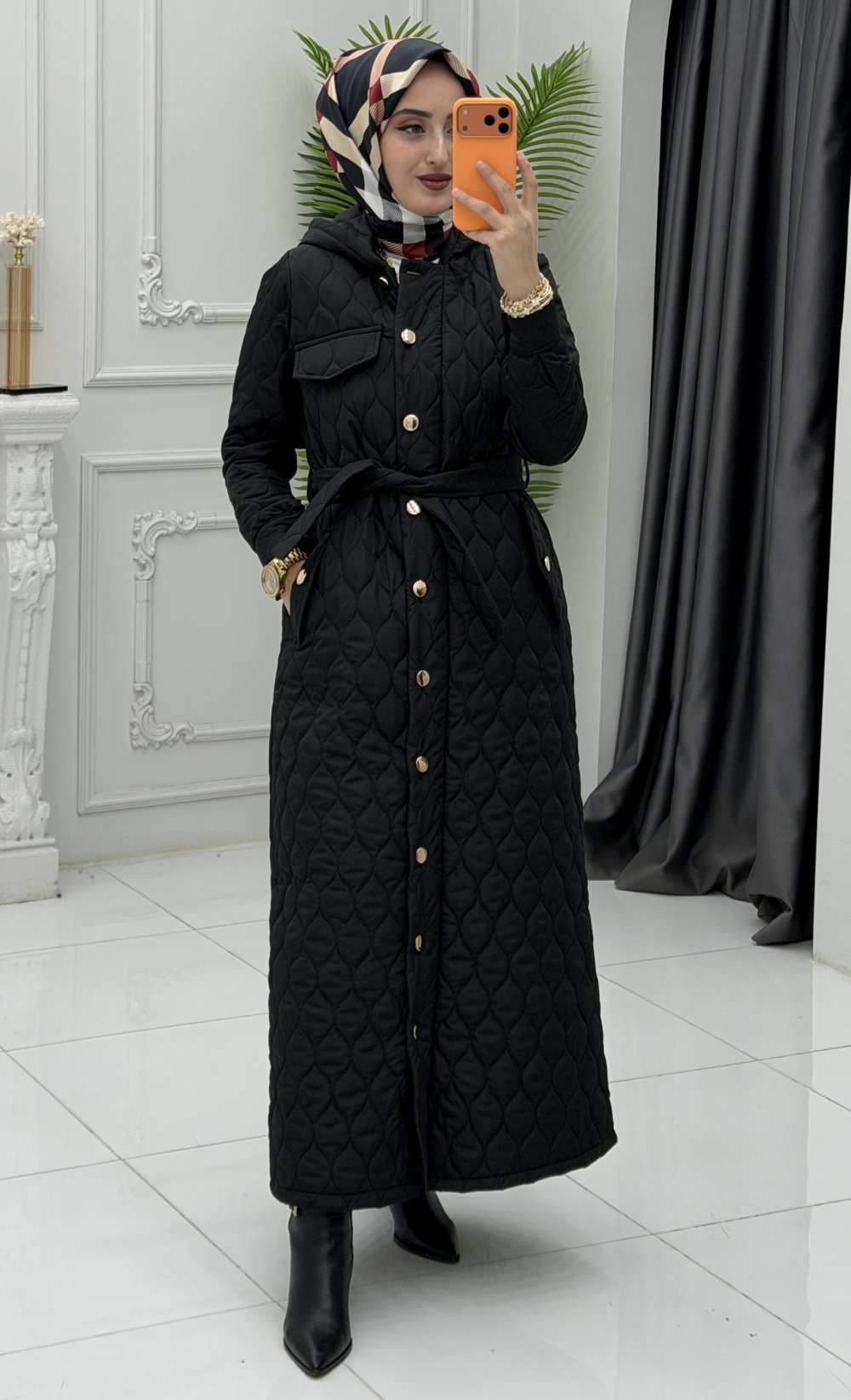 Gözde Kapitone Mont Siyah