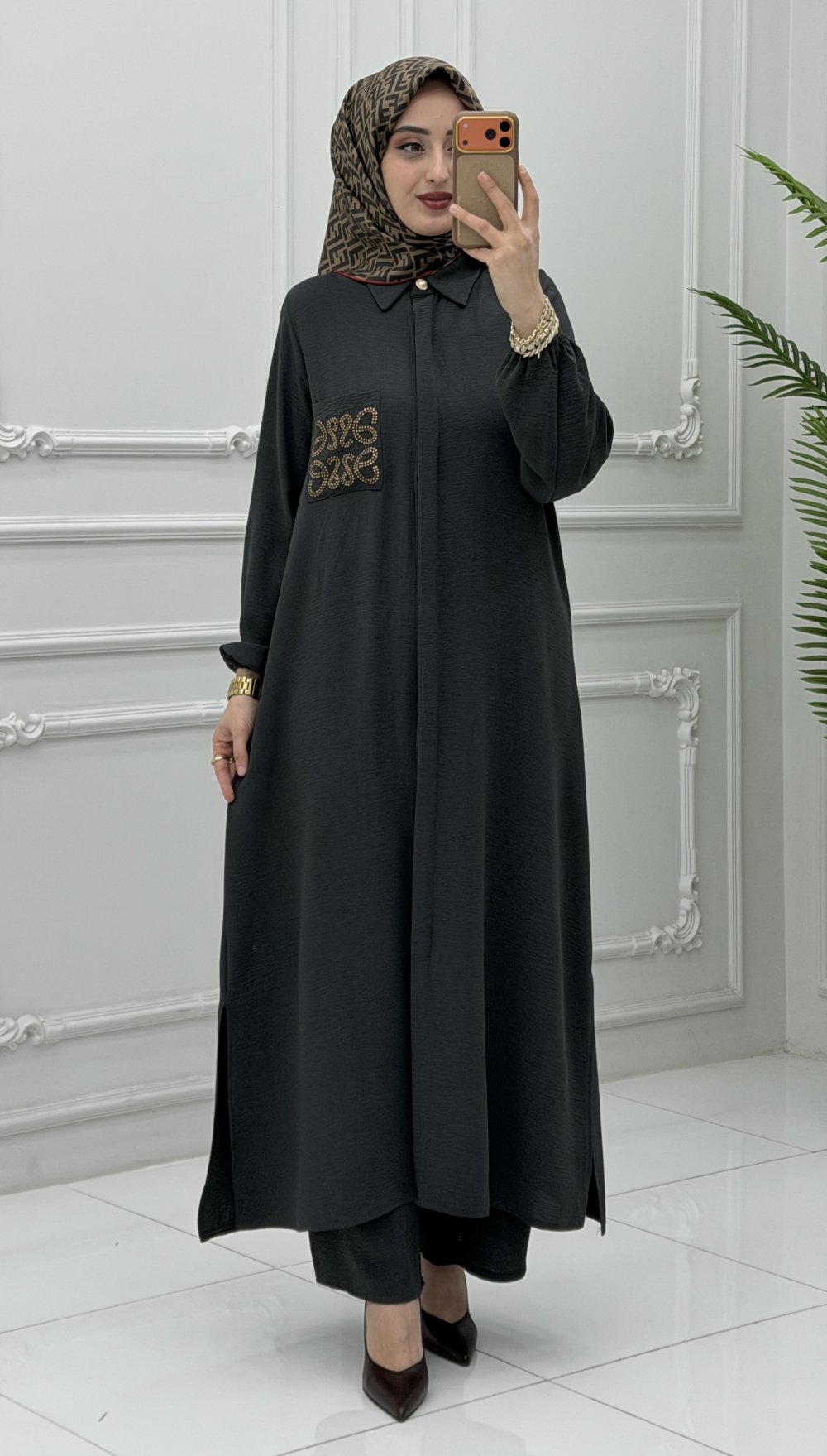 Gonca Takım, hem iş hem de günlük hayatınızda rahatlıkla tercih edebileceğiniz çok yönlü bir parçadır. Şıklığı konforla buluşturan bu tasarım, sezonun en gözde modellerinden biri olacak!