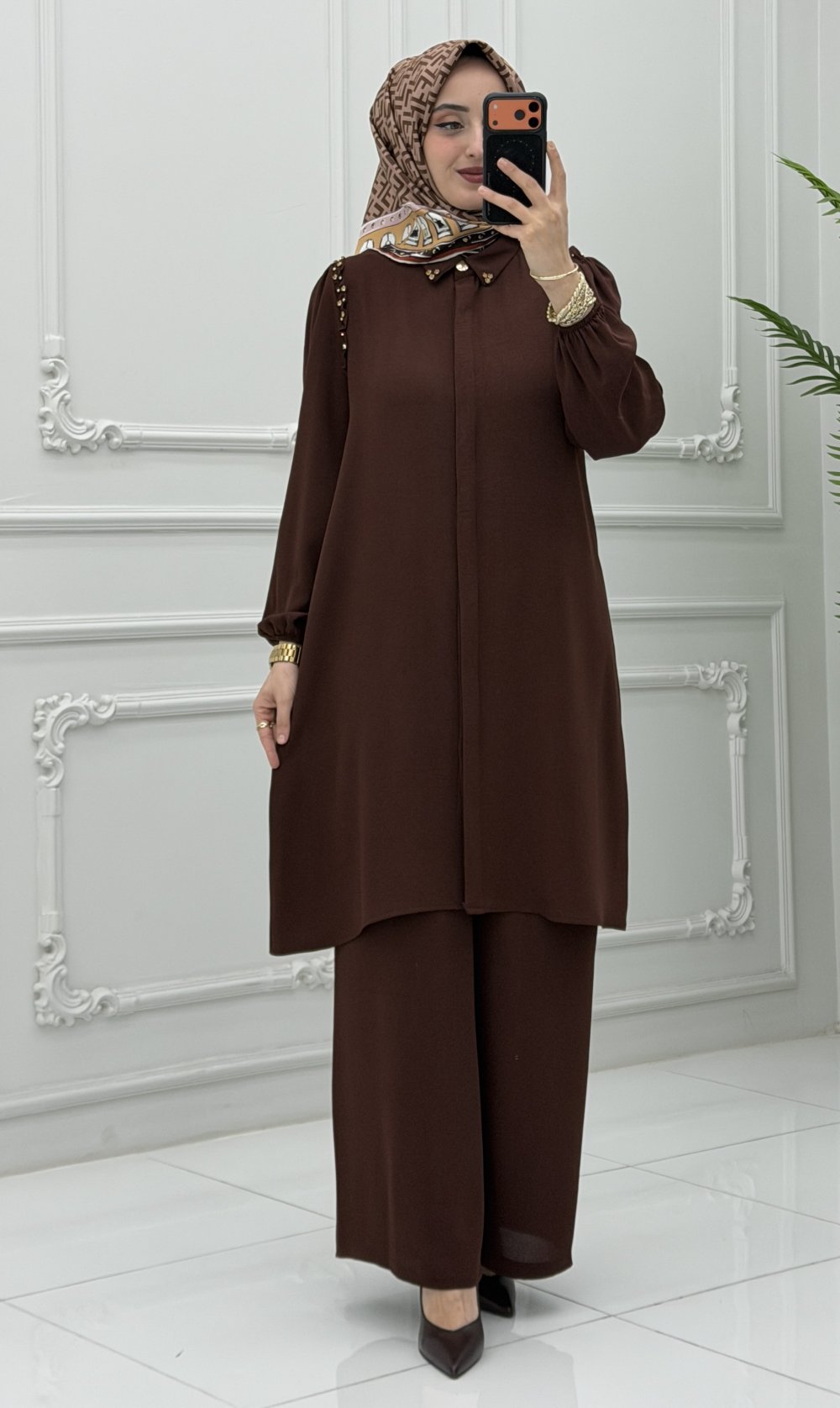 Işıltı Takım Kahverengi