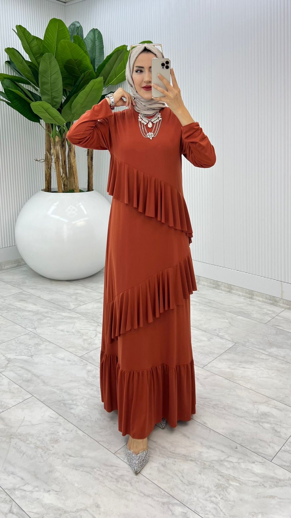 Kiremit Premium Tijen Elbise Tesettür Giyim