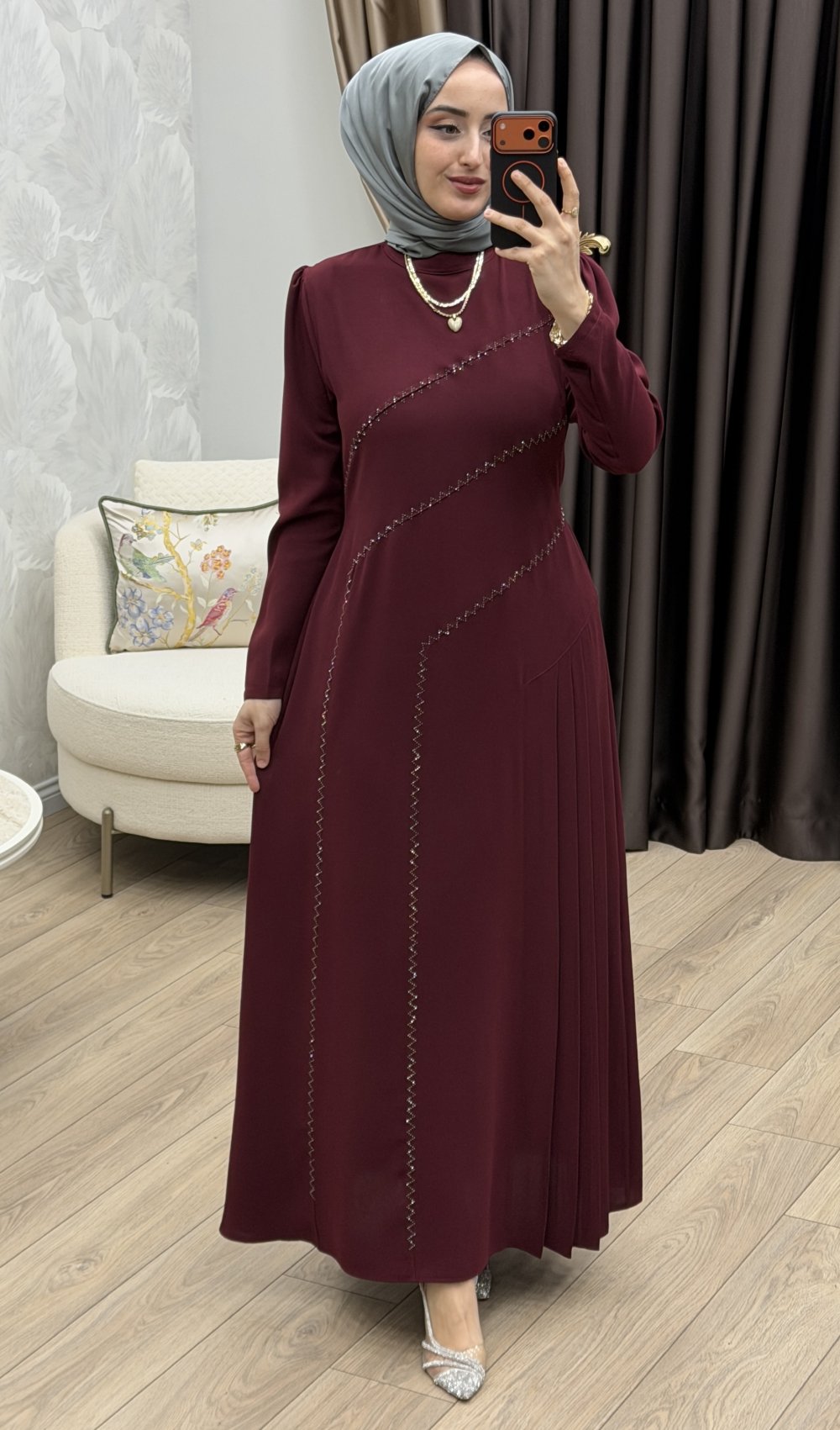 Kristal Abiye Bordo