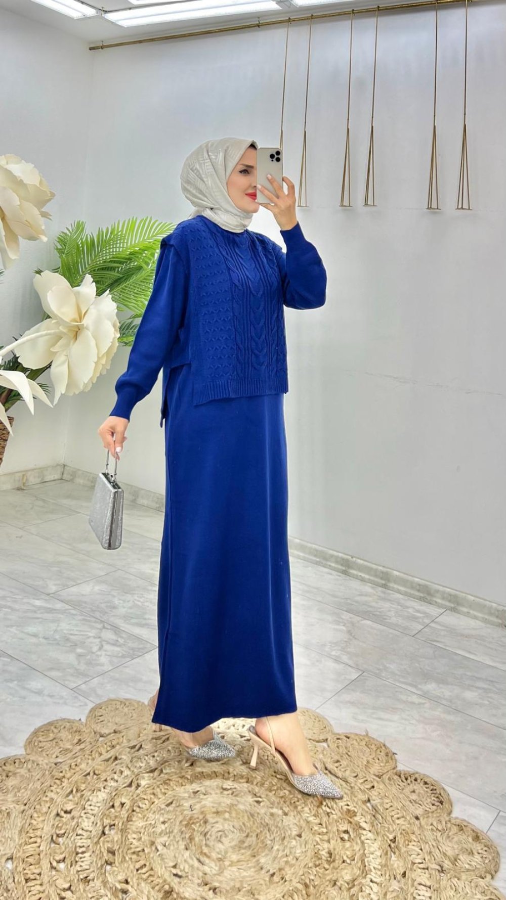 Lacivert Damla Triko Elbise Takım Tesettür Giyim