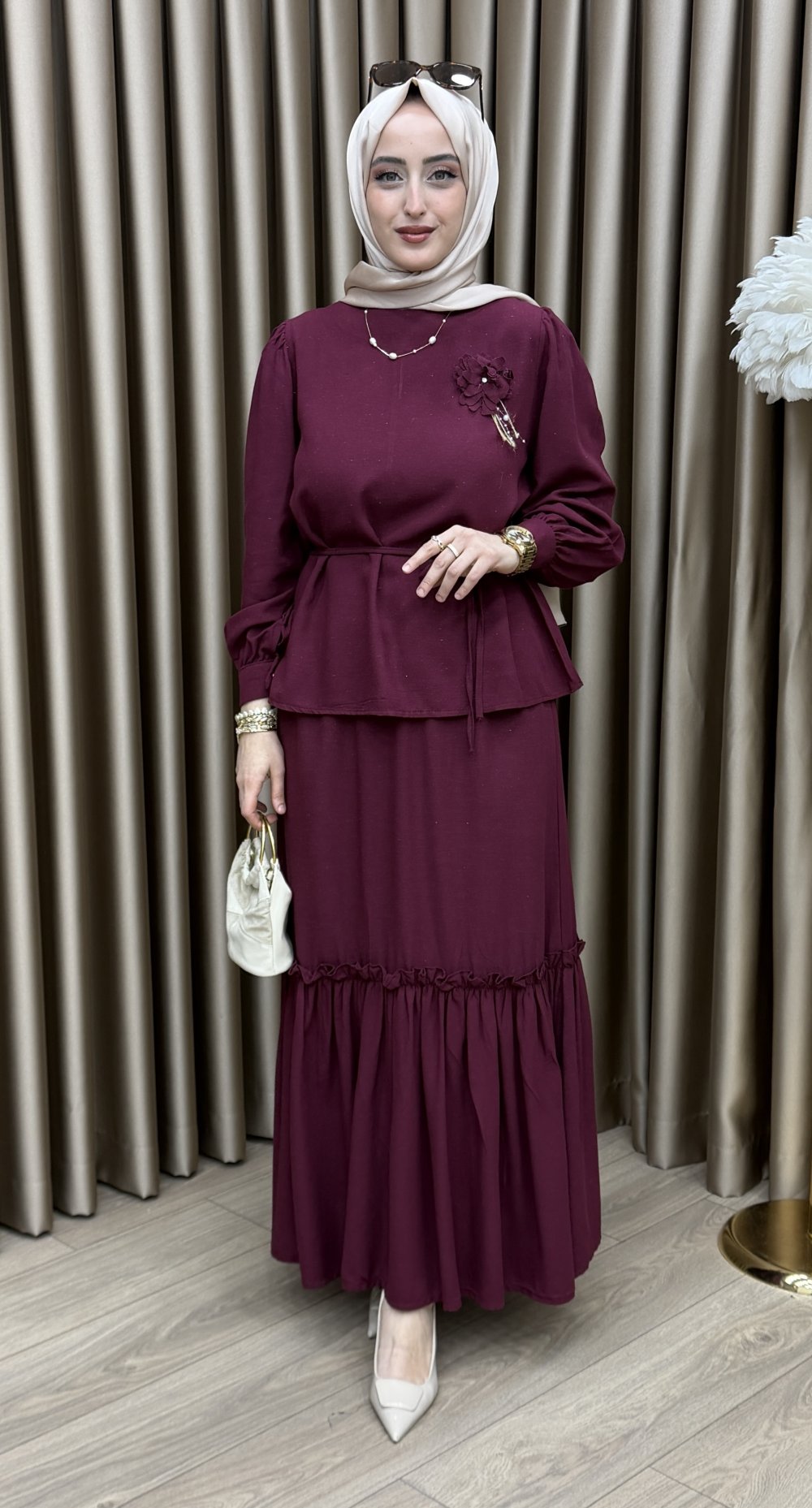 Manolya Etek Takım Bordo