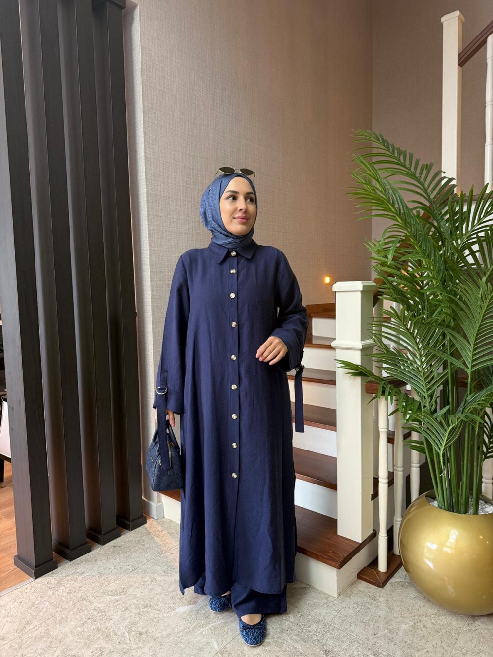 Tunik boy 125 cm’dir. Yanlarda cepleri mevcuttur. Kolları D toka apolet detaylıdır.