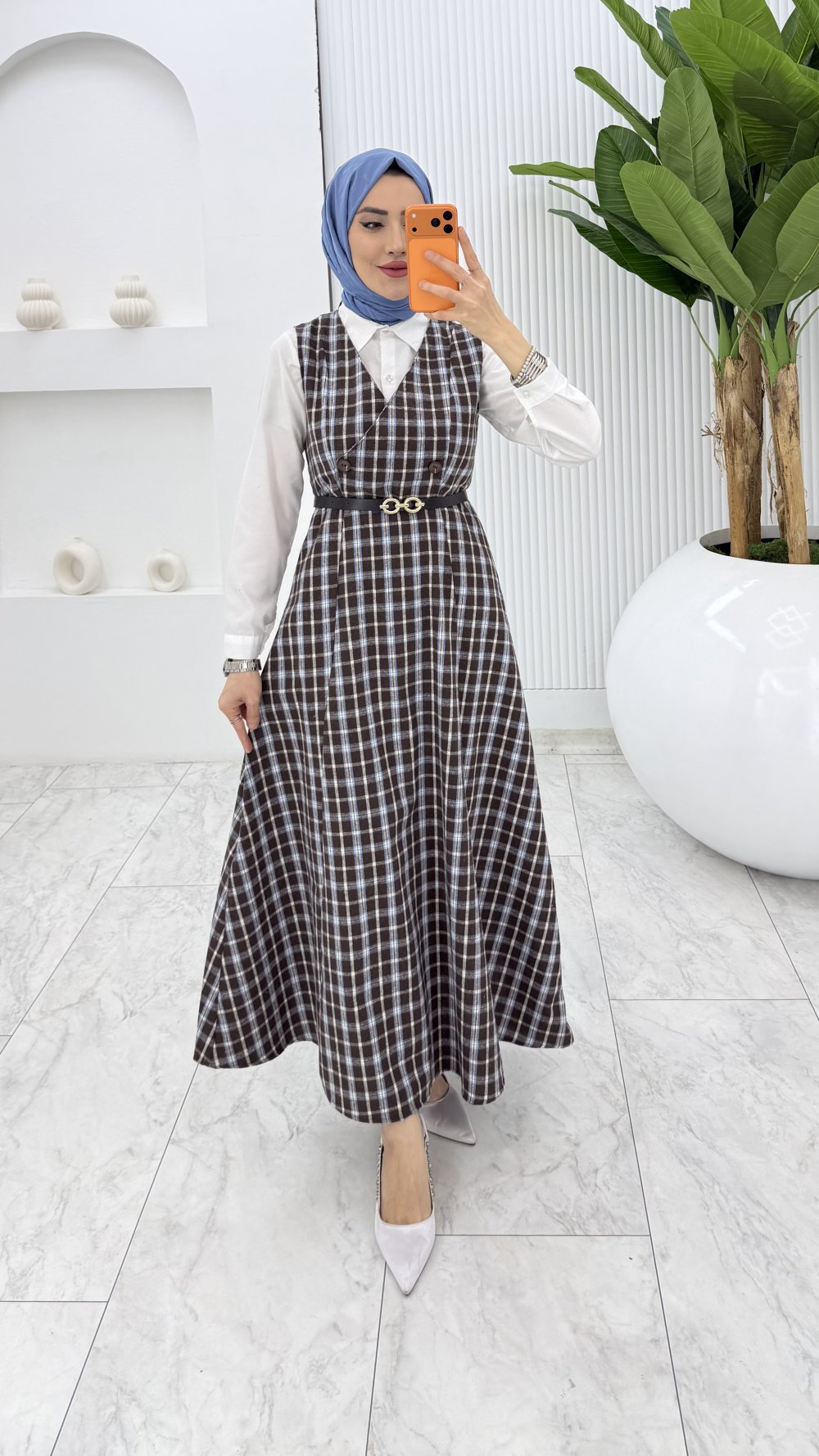 Mavi Leyla Ekose Jile Tesettür Giyim
