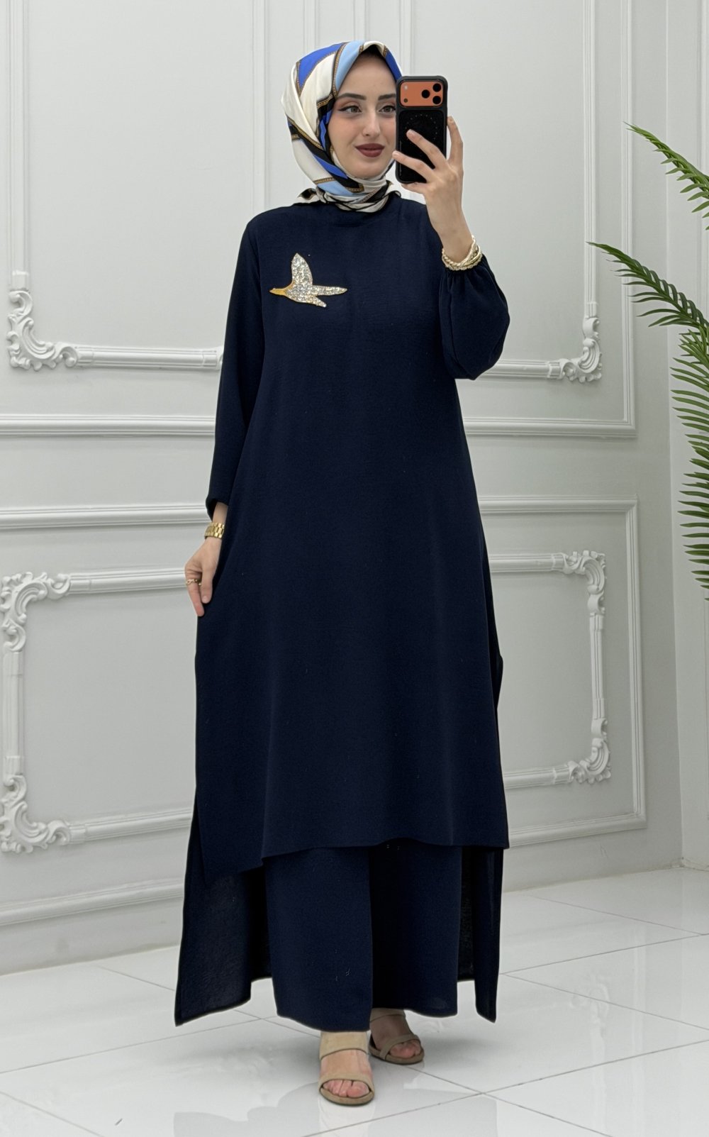 Melina Takım, hem iş hem de günlük hayatınızda rahatlıkla tercih edebileceğiniz çok yönlü bir parçadır. Şıklığı konforla buluşturan bu tasarım, sezonun en gözde modellerinden biri olacak!