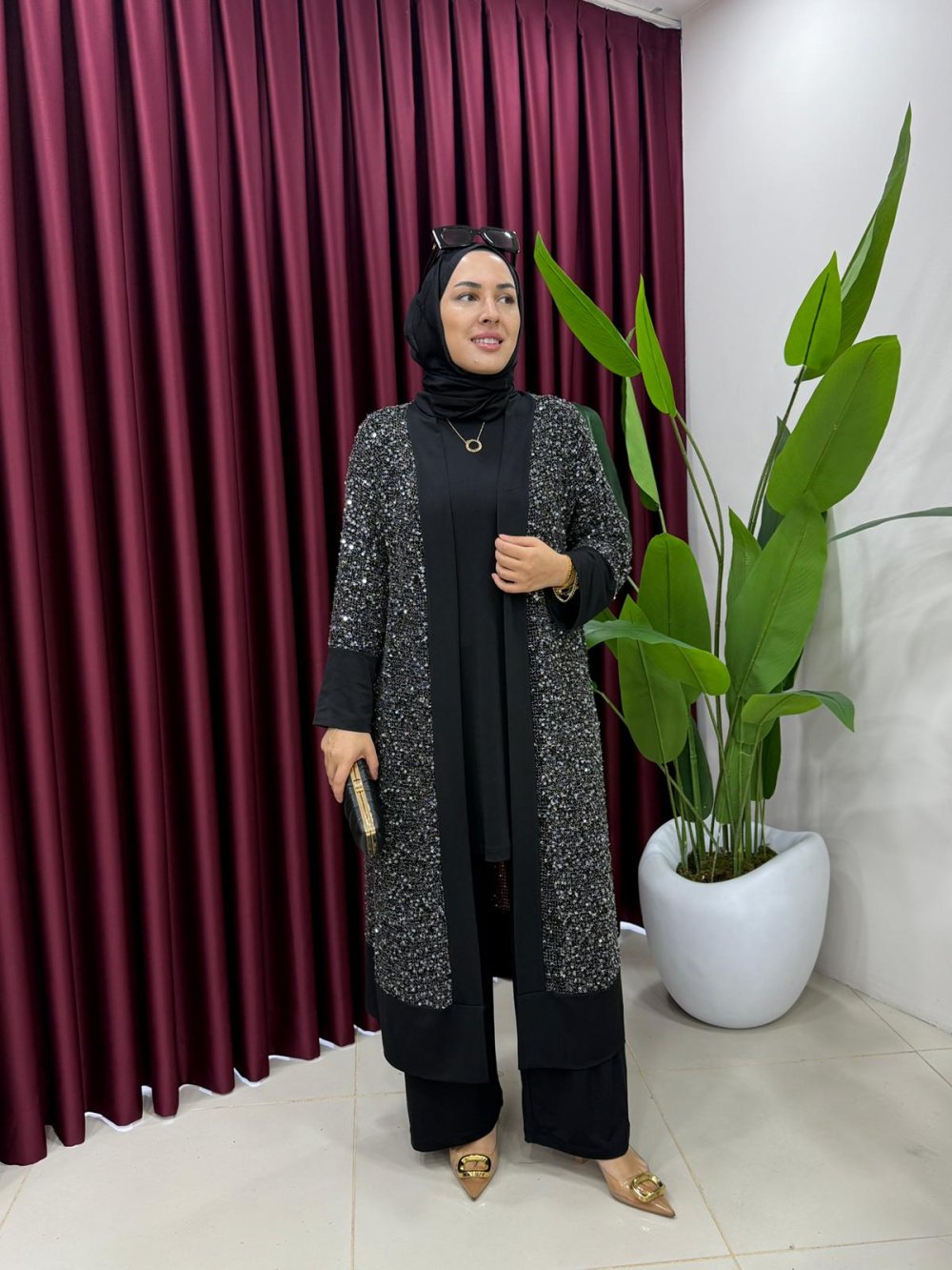 Payetli Hırkalı Takım Siyah