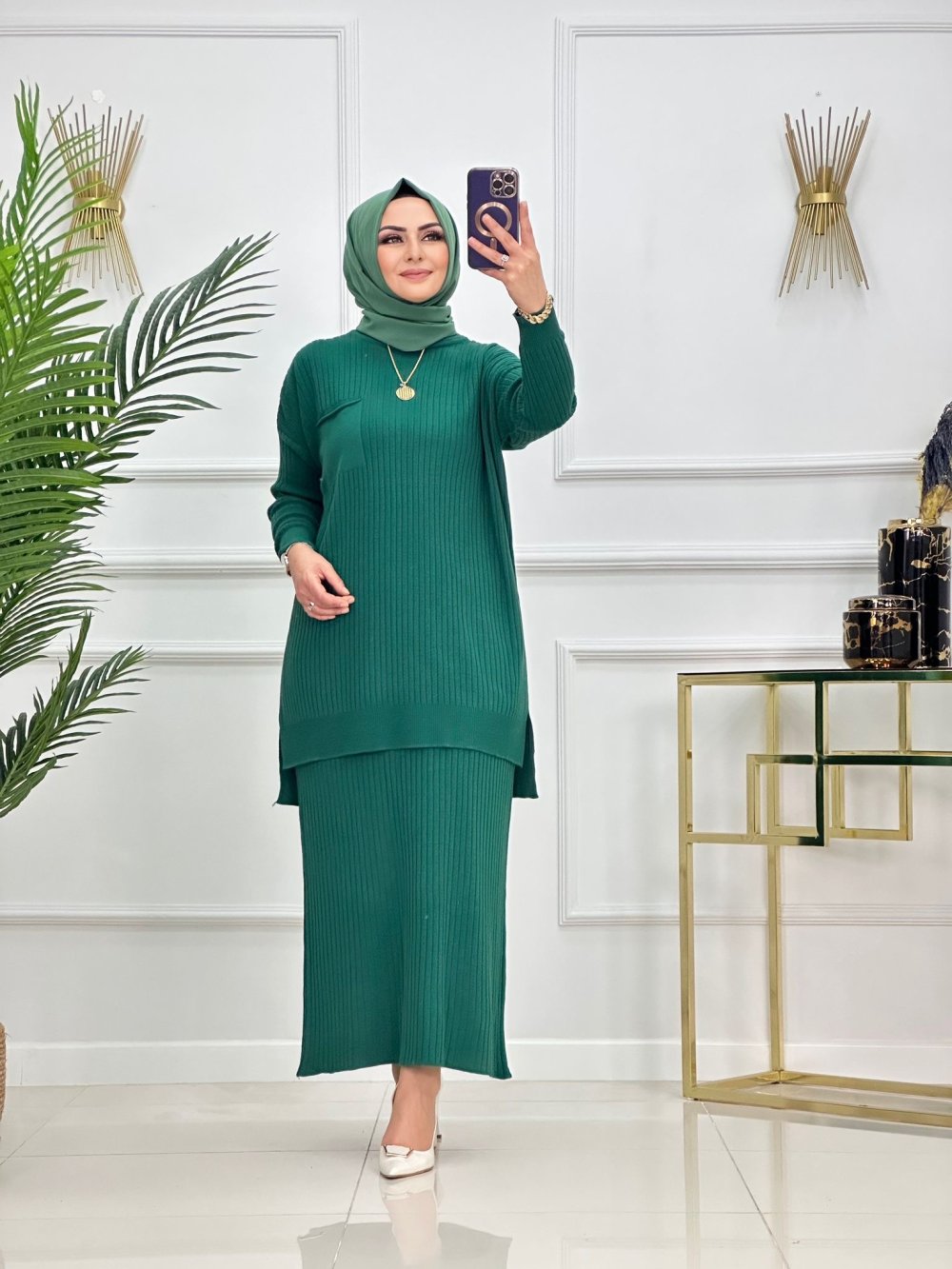 HANIM HANIMCIK ?Yumuşacık  dokusuyla  Simay triko etekli takım ?