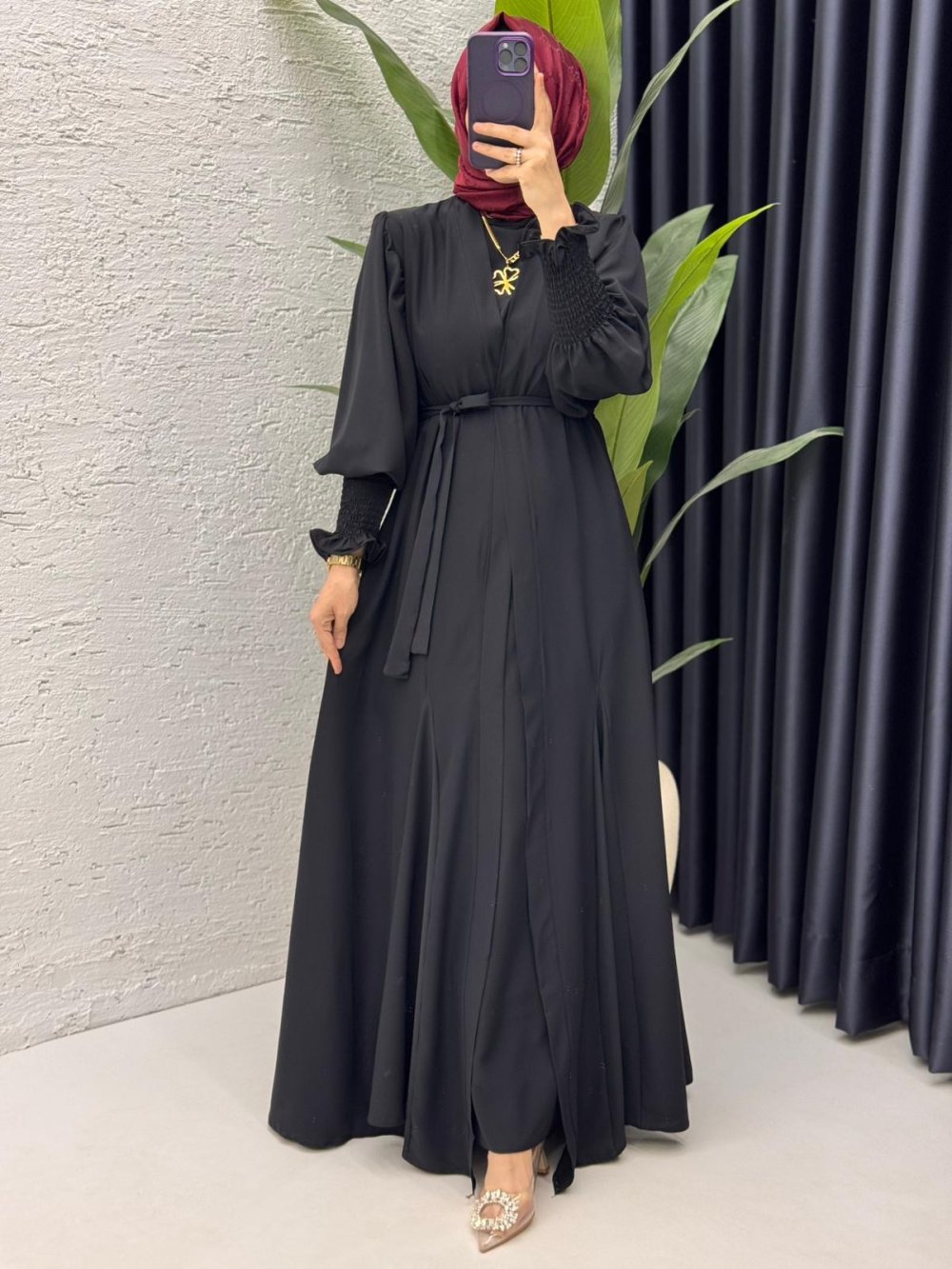 Siyah Mihra Abaya Takım Tesettür Giyim