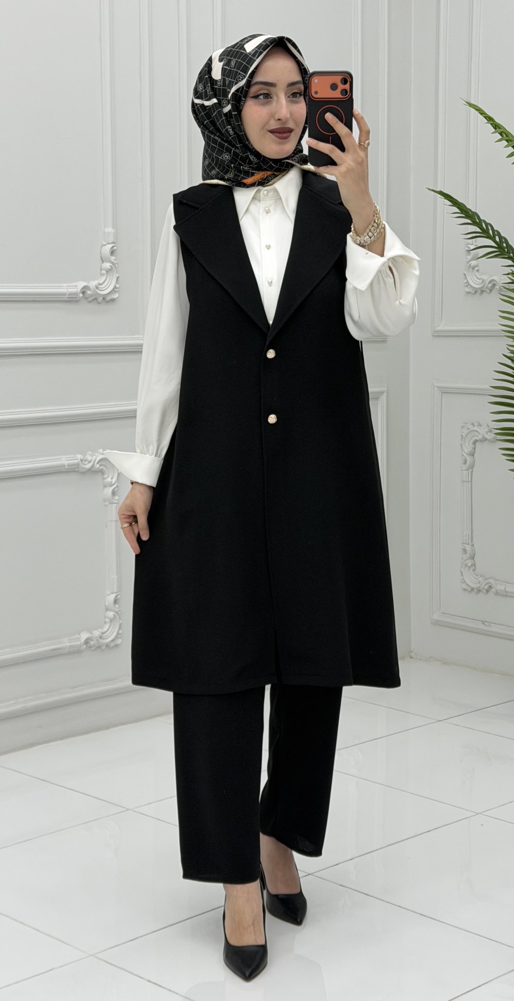 Rahatlık ve şıklığı bir araya getiren Sofia Yelek Takım  , sade ama zarif duruşuyla günlük kombinlerinizi güçlendiriyor. Yumuşak kumaşı ve esnek yapısı sayesinde gün boyu konfor sunarken, modern kesimiyle stil sahibi bir görünüm yaratır. rengin sofistike etkisi, her ortamda şıklığı yakalamanızı sağlar.