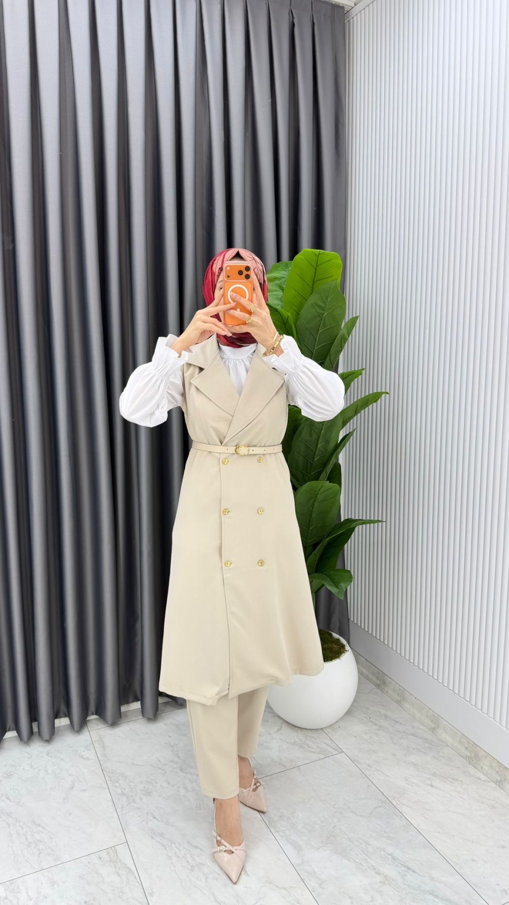 Taş Tuğba Kemerli Yelek Takım Tesettür Giyim
