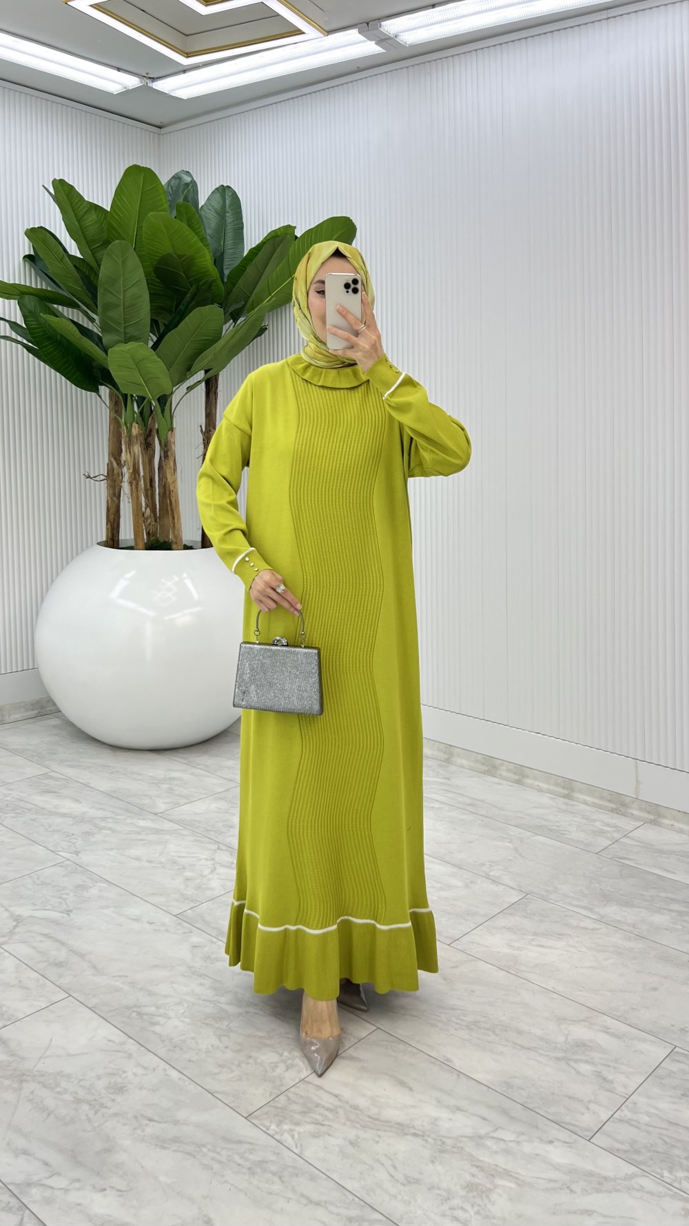 Yağyeşil Bensu Triko Elbise Tesettür Giyim